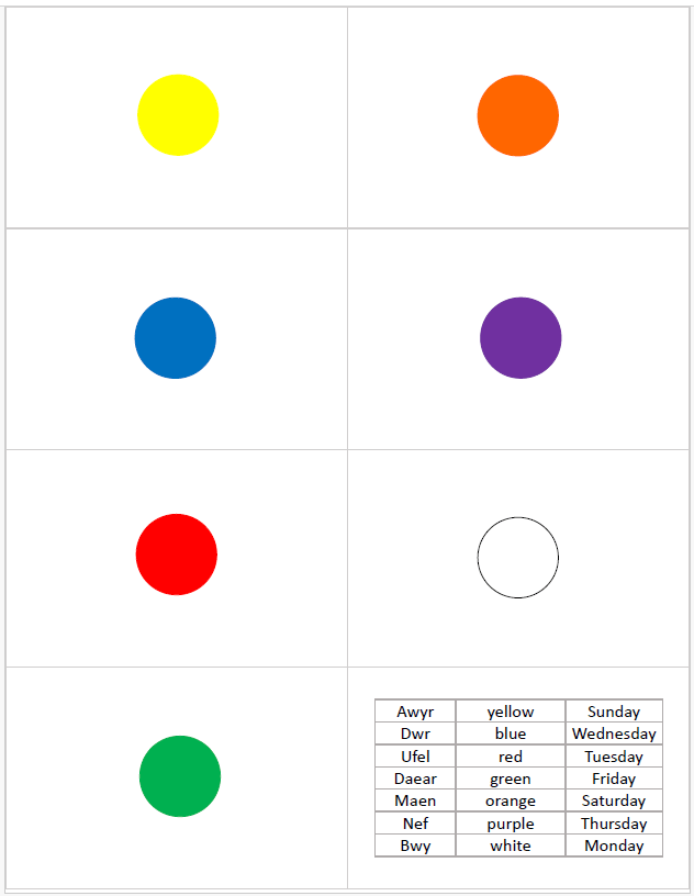 I made a chart with circles of colors to focus on.